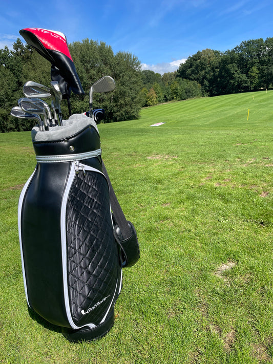 GolfRolfe 14415 Premium Golftasche Cartbag Caddybag in schwarz Lackleder mit Löwe