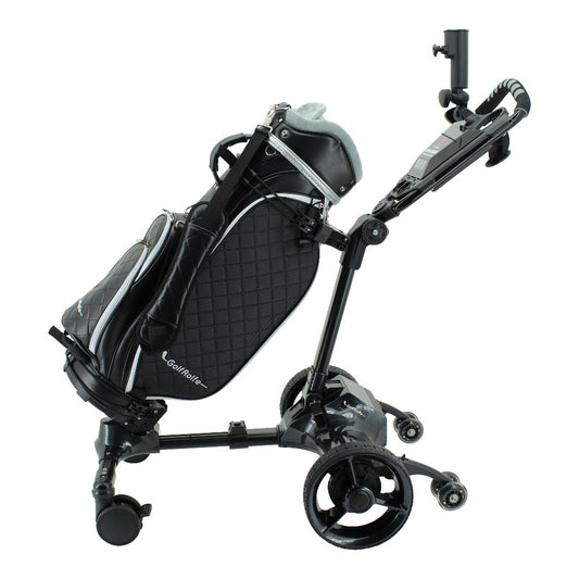 GolfRolfe 14408 Premium Golf Trolley in schwarz mit schwarzen Reifen